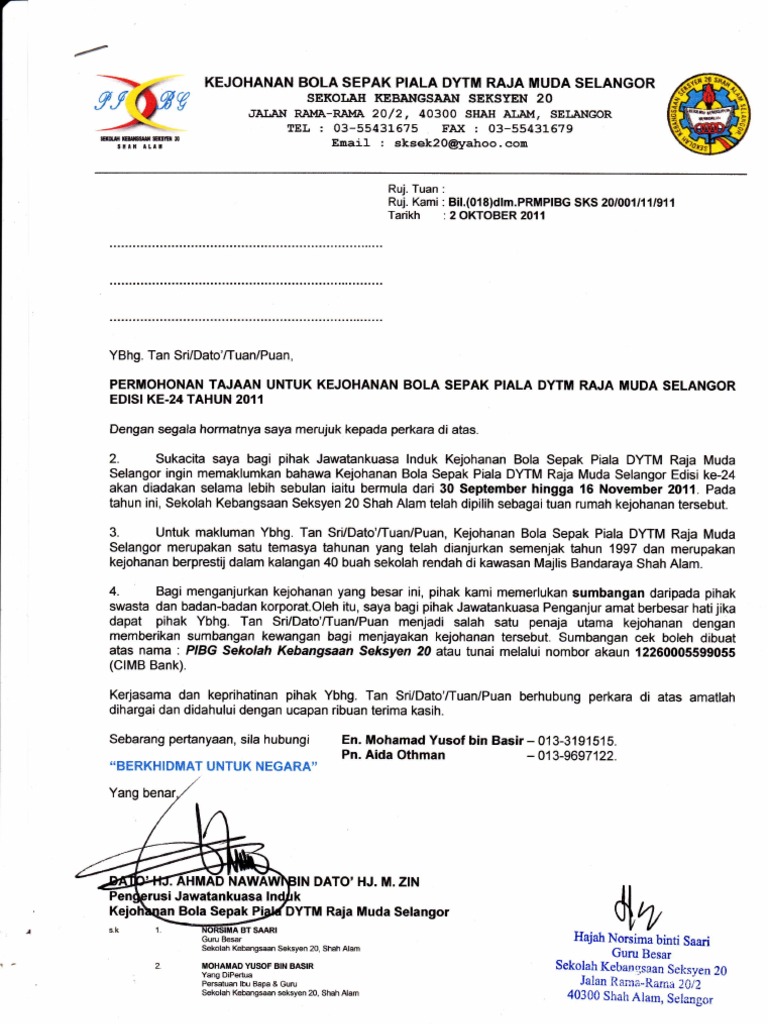 Tentu saja ekskul wajib ini cukup sering. You merely have to go through the gallery below the Contoh Surat Memohon Tajaan picture. Surat minta sumbangan Teacher Nasrah.