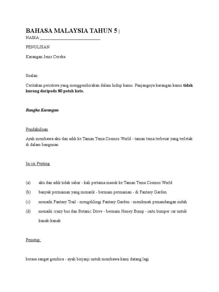 Mimpi yang Menakutkan 2 Malam itu cuaca agak terang. Pada hari Ahad yang laluanda sekeluarga berkelah di tepi pantai. Contoh karangan rencana covid 19 yang bagus dan terbaik.